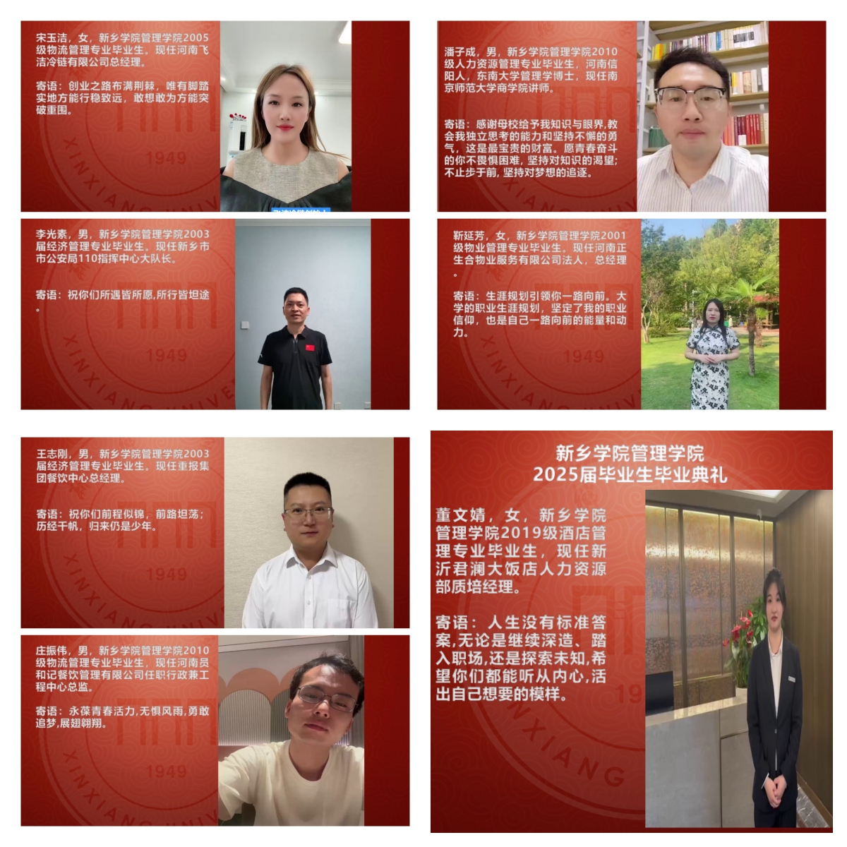 毕业生代表2021级物业管理1班李敏发言表达了对母校的感恩和祝福;毕业生家长代表贾贵忠发言给毕业生们送去了真挚祝福和深情牵挂;优秀员工代表丁洁发言为即将逐梦远行的学弟学妹送上诚挚的祝福,同时还有公司诸多员工分别为2025届毕业生录制毕业寄语小视频,祝福毕业生们前程似锦。