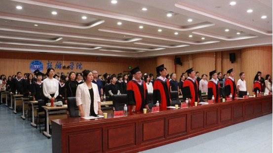 郭强宣读了本科毕业生学士学位授予决议,杨钧和学院领导全体参加典礼毕业生代表颁发学位证书、援正流苏,共同见证毕业生人生中的重要时刻。