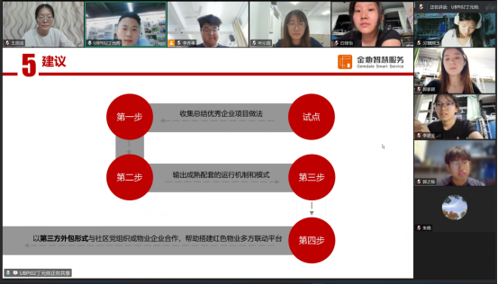 会议围绕“让红色物业赋能社区治理”主题展开,丁元帅学长分享了红色物业的内涵与特色:其核心是“党建引领”,通过社区、物业、居民“三方联动”提升服务质量,兼具政治属性与公益属性,以党员为骨干队伍,推行“双向进入、交叉任职”等机制创新,与普通物业相比,更注重以“人”为核心的民生服务与基层党建融合。建设红色物业是政策导向与社会需求的双重选择,既响应了习近平总书记“城市治理要精细”的要求,也能破解老旧小区改造难题和服务死循环问题,在老旧小区和大型社区有不同的适用模式,且金地物业、沈阳、西安、株洲等地已有成熟实践案例。