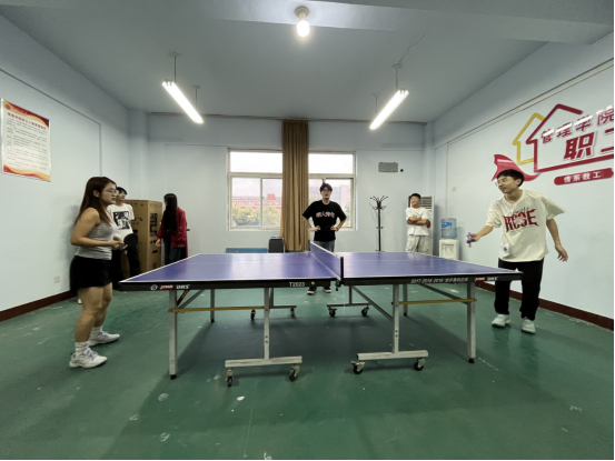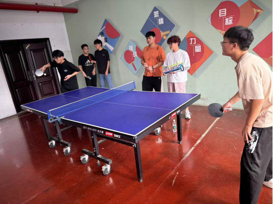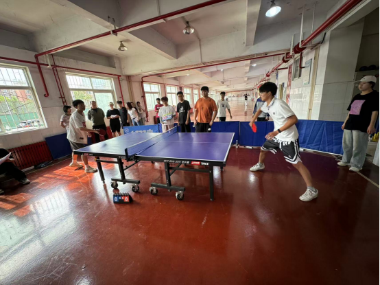 比赛采取团体积分制规则,每个球队由5名男生和3名女生组成。在活动现场,来自不同专业的同学们化身 “乒乓战士”,手持球拍,眼神坚定。白色的小球在球台上来回穿梭,划出一道道优美的弧线。直拍、横拍、扣球、旋转球、弧线球等精彩瞬间不断上演,每一次精准回击或精彩对攻,都引来阵阵喝彩。同学们在球台前尽情挥洒汗水,享受着乒乓球运动带来的快乐,现场气氛热烈而友好,仿佛空气中都弥漫着青春的热情。