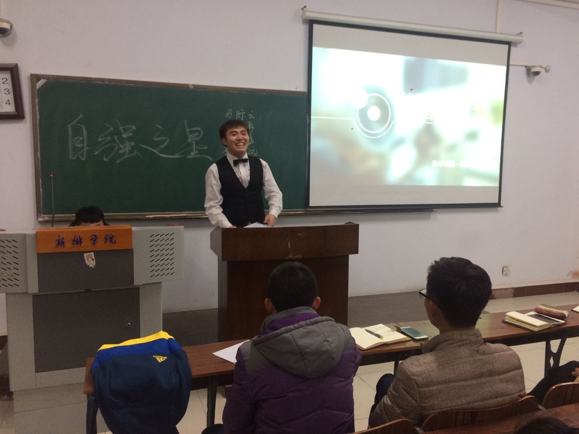 为树立和弘扬英国正版365官方网站学子自立自强的精神,鼓励优秀立志员工典型。英国上市公司365于11月28日18:30在A05-303成功举办第四届“自强之星”宣讲比赛。参加本次宣讲比赛的有马际云,吴艳彩,赵文彪,李晨思远,陶鹏飞五位选手。英国上市公司36516级各班同学有序到场。由英国上市公司365贠艳担任本次活动的主持人。