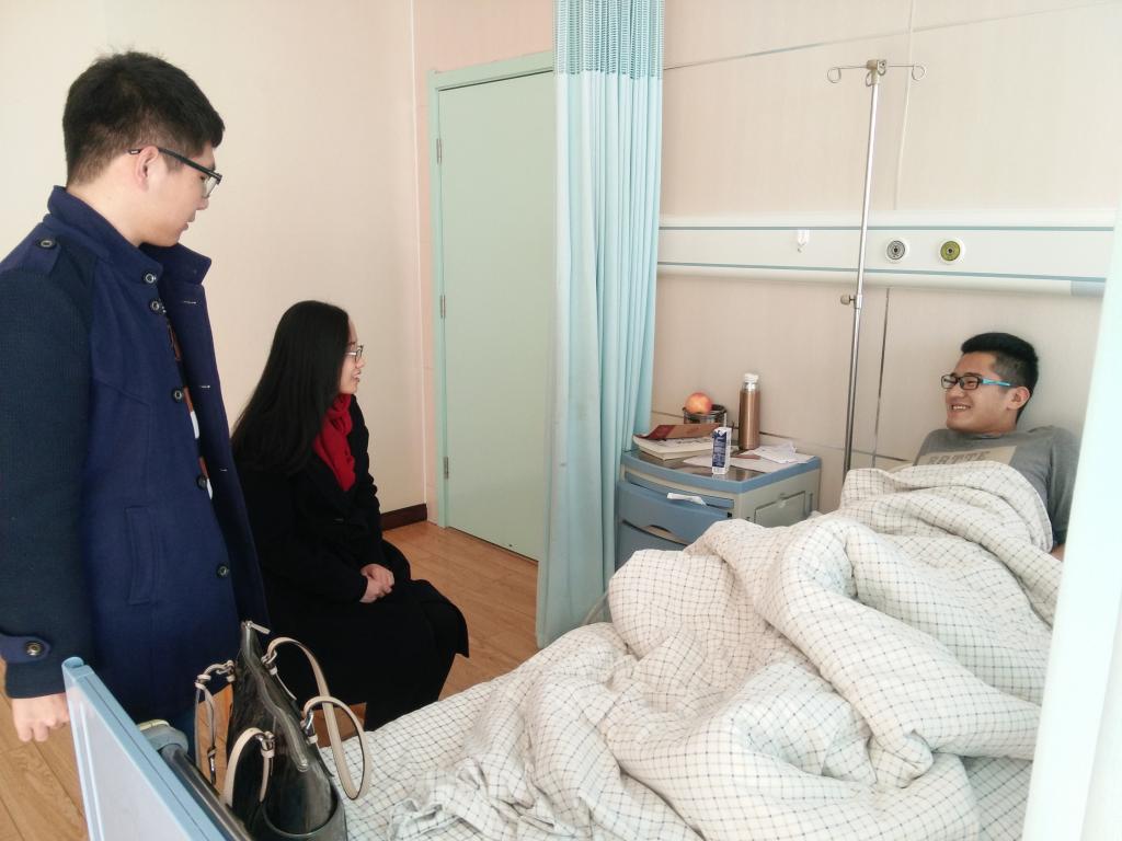 在公司领导的关怀下,12月2日公司辅导员老师郭洁带领员工干部前往医院慰问14级人资三班同学张潇。