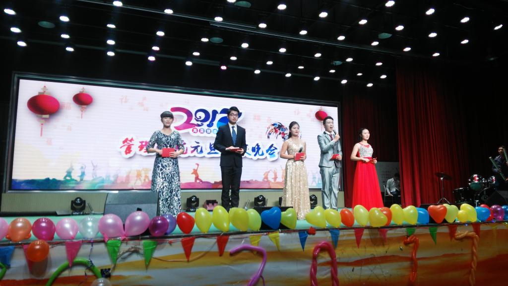 新的一年即将到来,公司为给全校师生送上最真诚的新年祝福,于2016年12月28日晚19:00整在西区音乐厅为大家精心准备了一场精彩绝伦的晚会。到场观看的领导有党总支书记娄季春老师,副经理孙江超老师,团总支书记姚路老师,还有公司的辅导员老师们。