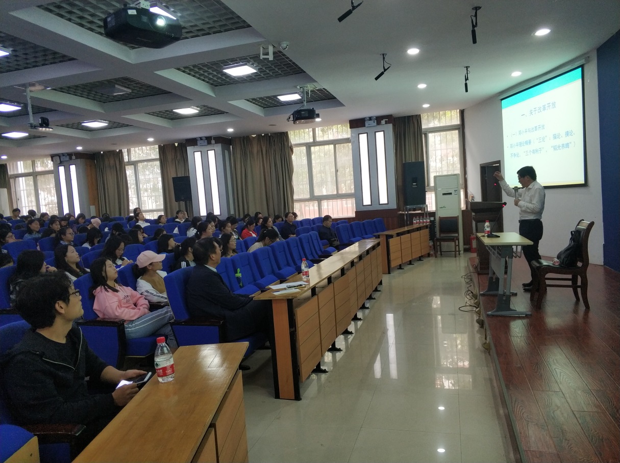 本次会议由申成玉经理主持,彭诗金教授长期致力于市场营销、经济管理方面的研究,研究成果丰硕。彭教授是河南省政协委员、民盟河南省委委员、经济科技委员会副主任,曾多次向省政府提供培训和咨询服务。此次讲座彭教授围绕“改革开放40年”这一主题从改革开放的历史轨迹及其伟大意义、中美贸易摩擦与改革到改革开放之未来方向,内容丰富,语言幽默,使同学们受益匪浅。在中美贸易摩擦问题上,彭教授以目前国际形式为基础,从贸易逆差、国际贸易规则、国家制度等方面阐述了中美贸易摩擦的表层、中层和深层原因见解独到,师生深受触动。最后,彭教授对同学们寄予厚望,希望同学们做一个有本领、有担当的新时代青年,为实现中华民族伟大复兴贡献自己的力量。