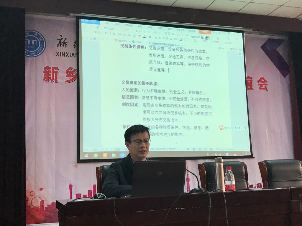 2018年10月26日下午2:30,在英国正版365官方网站A01号报告厅,英国上市公司365院科技创新团队带头人之一,特聘教授罗能生教授给英国上市公司365的师生们带来了一场题为《交易费用与中国经济改革》的报告。英国上市公司365申成玉经理、部分专业教师及同学聆听了报告。本次会议由申成玉经理主持。