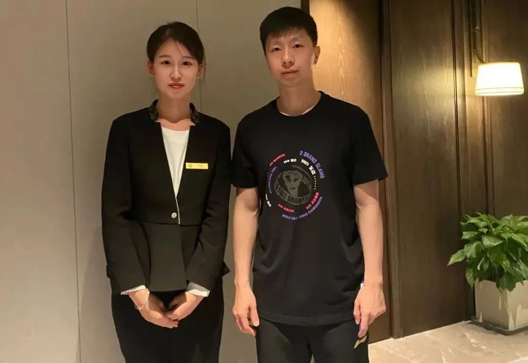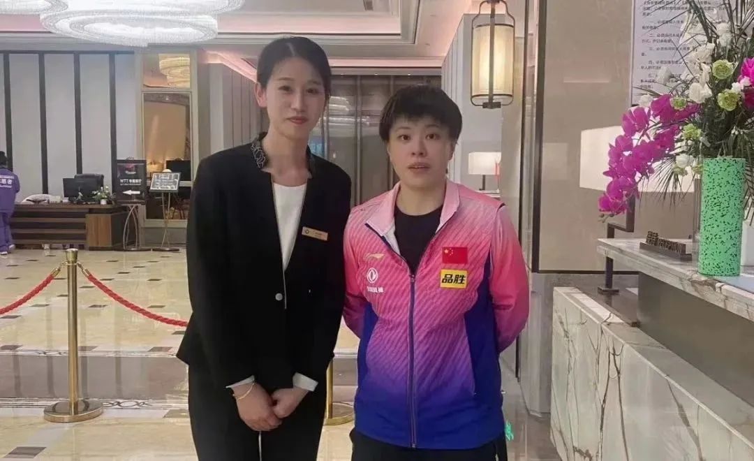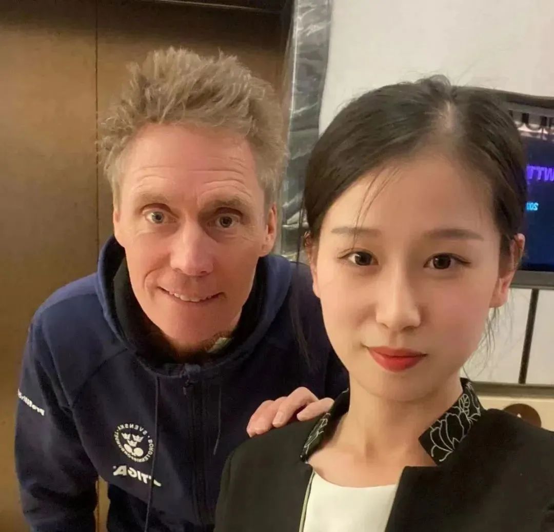 朱晓静和瑞典乒乓球选手莫雷加德合影