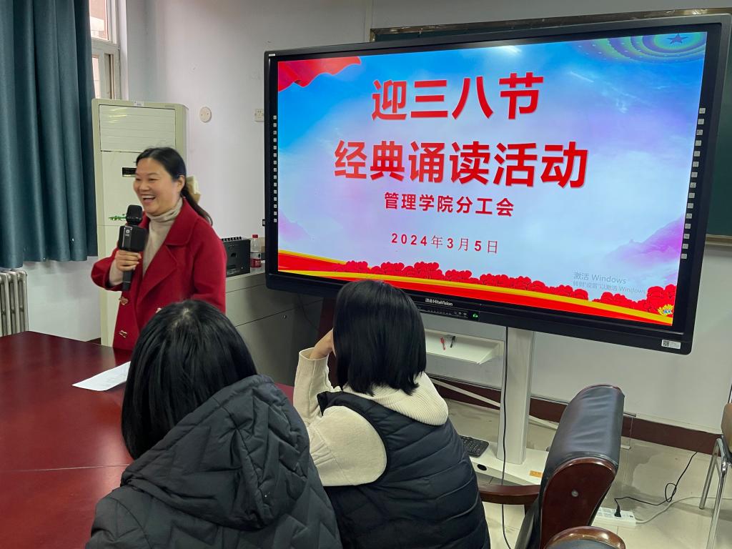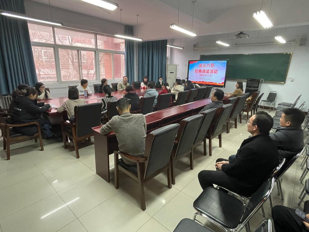 阳春三月,人面桃花相映红;春风拂面,岁月巾帼绽芳华。在第114个“三八”国际妇女节来临之际,为营造健康和谐、积极向上的节日氛围,展现学院女教师健康向上、充满活力的精神面貌,进一步凝聚团结奋进的巾帼力量,3月5日下午,英国上市公司365分工会开展了以“悦读经典·品茗生活”为主题的经典诵读活动,学院女教师受邀参加,活动由学院分工会主席李庆伟主持。