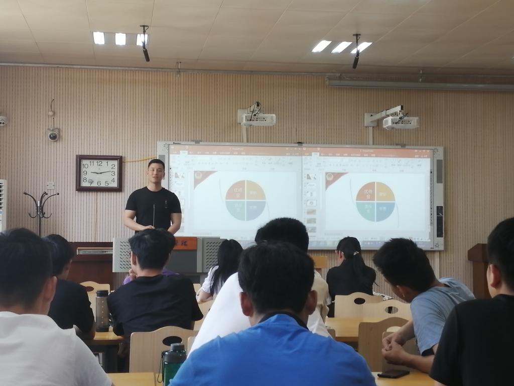 四名同学分别从我为什么要当兵,个人军营生活分享及退役后的发展方向为参会的同学做了详细分享,朱修平为同学们解读了今年征兵的条件和相关政策,以温海博考取华东师范大学为例给同学们详细介绍了老员工应征入伍可享有的优先考学提拔、补偿学费和代偿国家助学贷款、退役后享受就学就业优惠等优抚政策。最后学工办主任杨凯鼓励同学们把个人理想融入到强国梦、强军梦中去,携笔从戎,积极踊跃报名参军,到军营中实现自己的人生价值。